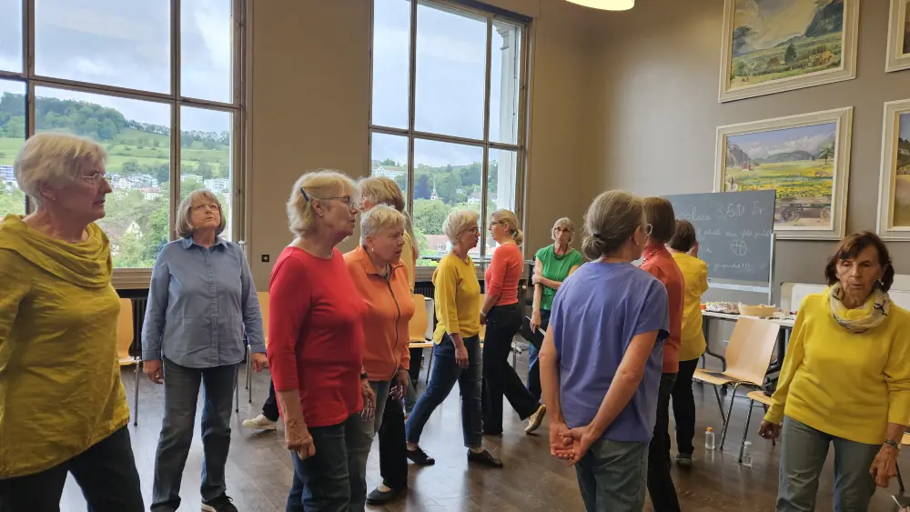 Die Frauen treffe alle pünktlich um 9.30 Uhr in Heiden im Hotel Linde ein. Zuerst gib es zur Motivation Kaffee und Gipfeli vom Verein offeriert. Gestärkt beginnen wir um 11 Uhr zu singen, alle sind guter Dinge. Den Zmittag dürfen wir anschliessend im Restaurant geniessen. Die Poularden sind sehr fein. Jetzt sind wir gestärkt und singen bis 16 Uhr.