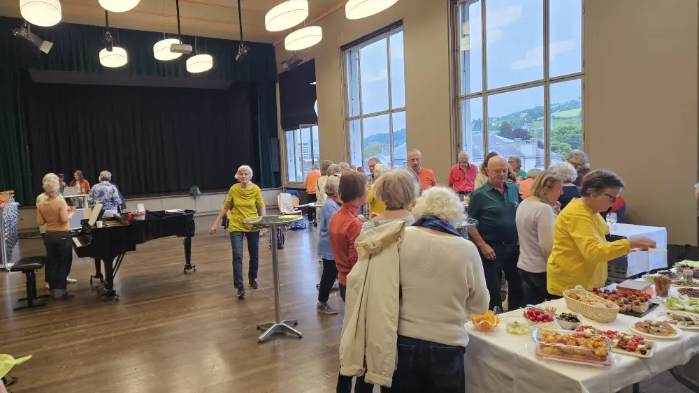 Wieder findet unser traditionelles offenes Singen im Schulhaus Talhof statt. Wir singen was wir vorbereitet haben.Ca. 30 Besucher singen dann eifrig mit. Das Läuten gefällt es. Anschliessend gibt es ein feines Apere das von Rosa Haldner organisiert wurde. Jede Sängerin hat was gebacken oder kreiert.