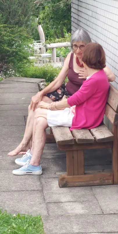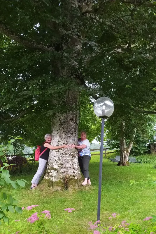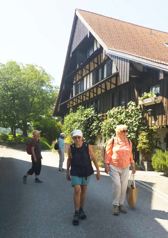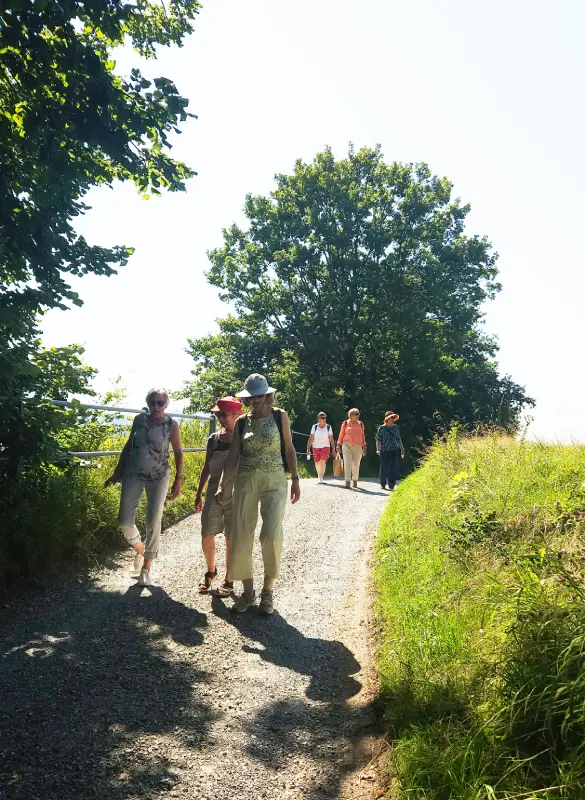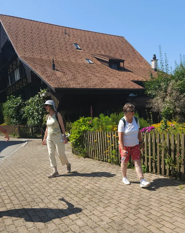 Am Nachmittag nimmt uns Marie-Theres bei der Postautohaltestelle Buriet in Empfang. Heute ist es sehr heiss., Marie-Theres gibt jeder Frau ein Fläschchen Wasser in die Hand, lieben Dank! Wir laufen gemütlich zum Steinigen Tisch. Dort geniessen wir eine wunderbare Aussicht. Anschliessend geht’s über 560 Treppenstufen durch die Reben abwärts nach Thal. Auah unsere armen Knie…. Nach ein paar weiteren Laufmetern kommen wir bei Marie-Theres zu Hause an. Sie hat viele feine Salate vorbereitet. Dazu gibt es Bratwürste vom Grill. Zum Dessert ein feines Tiramisu mit Beeren. Wir alle sind guter Laune und geniessen diesen wunderschönen Sommertag. Zufrieden gehen später alle nach Hause. Danke liebe Marie-Theres für das feine Essen und deine Gastfreundschaft!